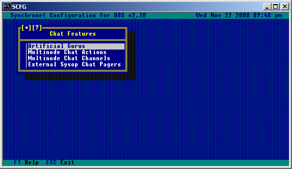 Selecting the Chat Features option from the SCFG will bring you to the following sub-menu, an explanation of the options shown here follow.