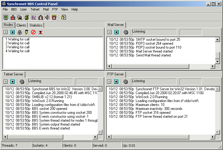 Upon Executing Synchronet the screen will look something like the one below.