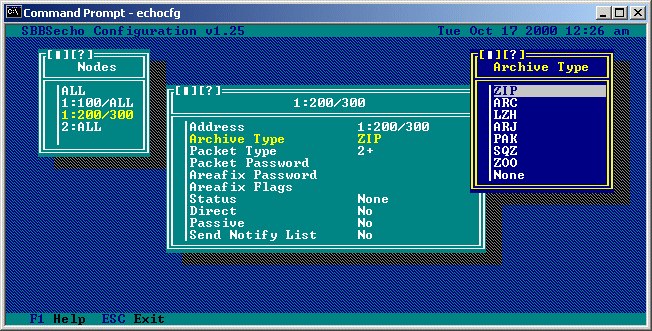 Maximum Packet Size: This option allows you to set the maximum size of each outgoing echomail packet. Maximum Bundle Size: Mail packets are normally packed into what are called "bundles" (unless a node is set up to receive uncompressed mail packets). This option allows you to specify the maximum size of each outgoing mail bundle.